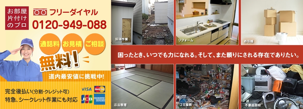 札幌のゴミ屋敷清掃、不用品処分、遺品整理|北海道最安値挑戦中